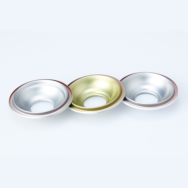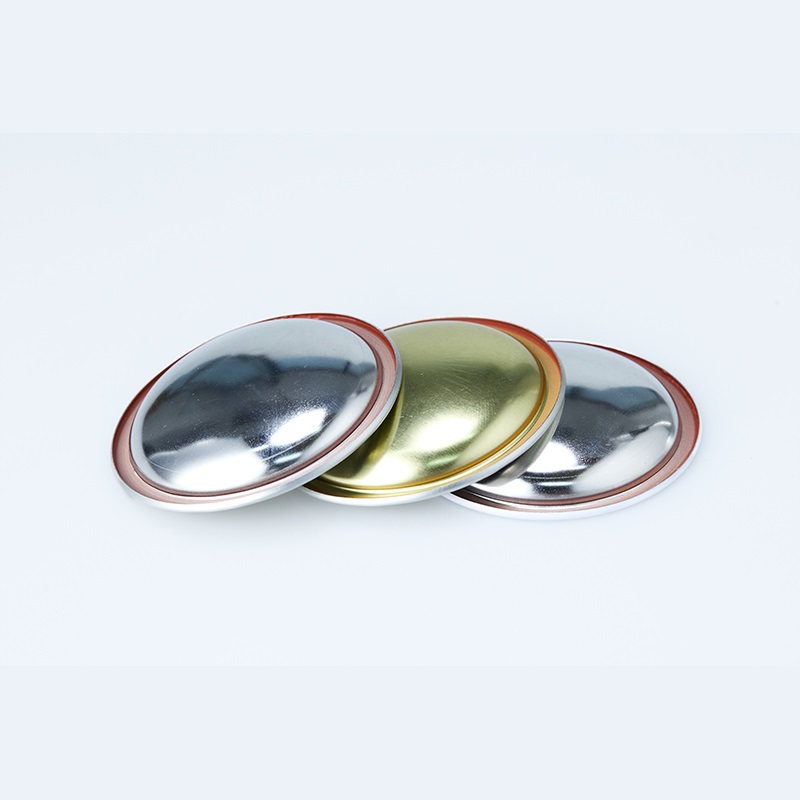Компоненты аэрозольного баллончика диаметром 65 мм: крышки с прозрачным защитным лаком.