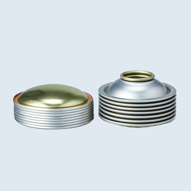 Аэрозольные баллончики в форме конуса и купола диаметром 65 мм, покрытые прозрачным/золотым лаком.