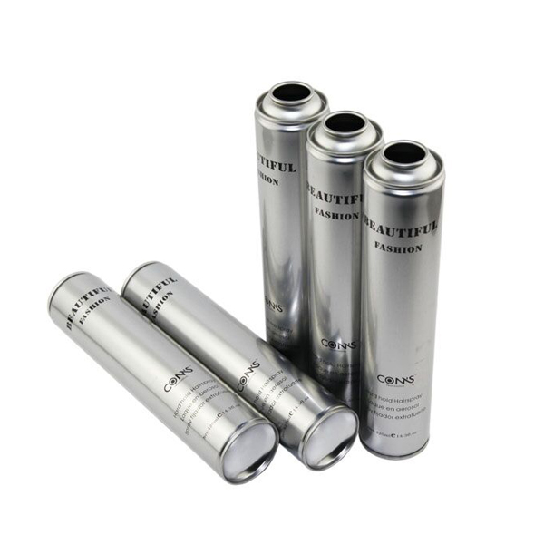 Популярный размер, диаметр 52 мм, пустой аэрозольный баллончик из жести для лака для волос, с блестящим металлическим эффектом на поверхности